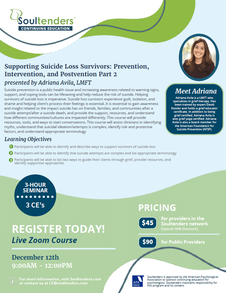 Supporting Suicide Loss Survivors: Prevention, Intervention, and Post Vention Part 2