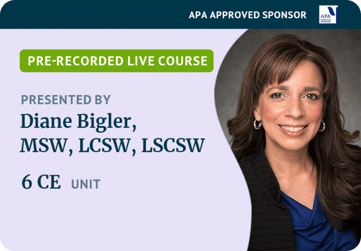 Diane Bigler, MSW, LCSW, LSCSW, is a Licensed Clinical Social Worker in Missouri and Kansas. She has over 20 years of experience in the fields of psychology, social work and mental health. She offers training solutions for mental health professionals seeking continuing education and corporations interested in employee wellness training.